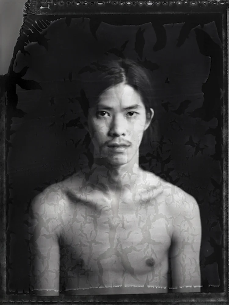 In my work I use two different processes; Polaroid Positive/Negative film and Wet Collodion. Polaroid Positive/Negative is a B&W large format film which has been discontinued since 2008. It is a fragile medium that has a tendency to react to changes in temperature, humidity, and other environmental factors. If uncared for, the film will continue to decompose and change. The organic decomposition of the film which can slowly change the image over time attracts me to this medium. The Wet Collodion process is an in-camera process which was invented in the 1850′s, this labor-intensive process involves coating a glass plate with collodion then sensitizing it by dipping it into a bath of silver nitrate, while still wet the plate is placed in the camera and exposed. Within a few minutes of exposure, the plate must be developed, fixed and dried in order to create the Ambrotype, a positive image on a sheet of glass.