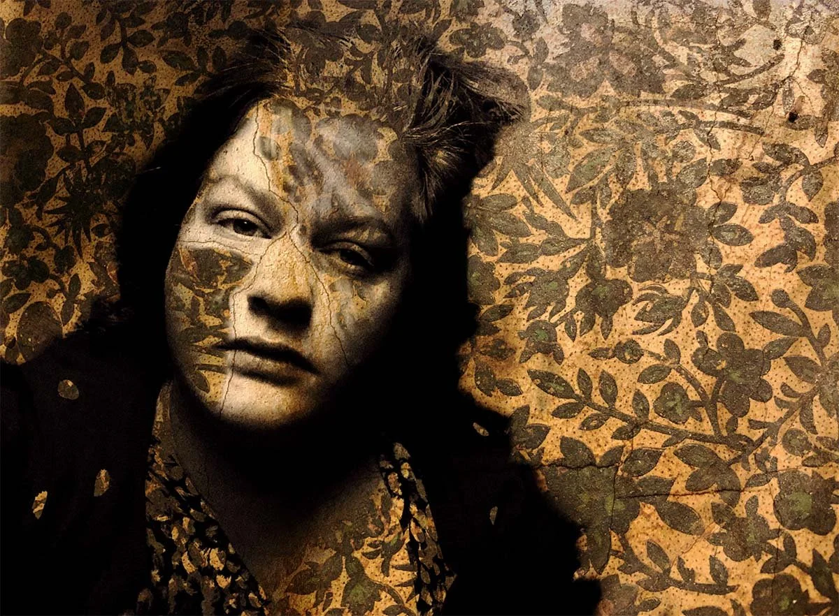 This aesthetic is representative of much of O'Brien's work. This one, however, stood out to me as a bit different. The reason? The almost wallpapered (or tattooed) look of the photo work on the woman's face. From the perspective of my life events, I see in this image someone vulnerable who was broken yet mended—not healed, not restored—but mended. Not a superwoman, but still a warrior-woman. Someone who has taken in life in its glory and its gore, gone ride or die, and then armed herself with battle paint and camouflage for the road ahead.